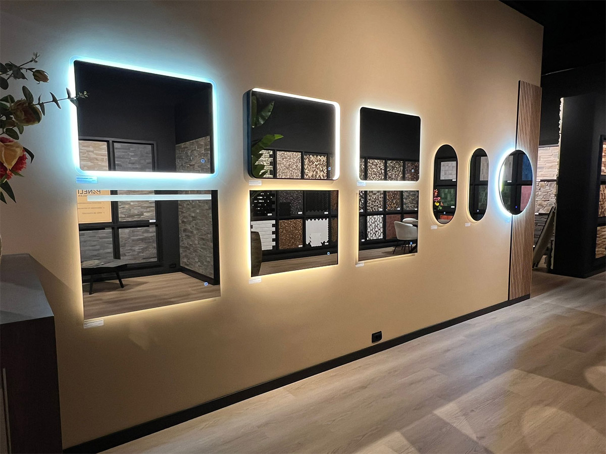 De frameloze Ambi badkamerspiegel met afgeronde hoeken combineert luxe met gemak. Dankzij LED-verlichting in 3 kleuren (3000K–6000K), een touch dimmer en ingebouwde spiegelverwarming, geniet je altijd van helder zicht – zelfs na het douchen.