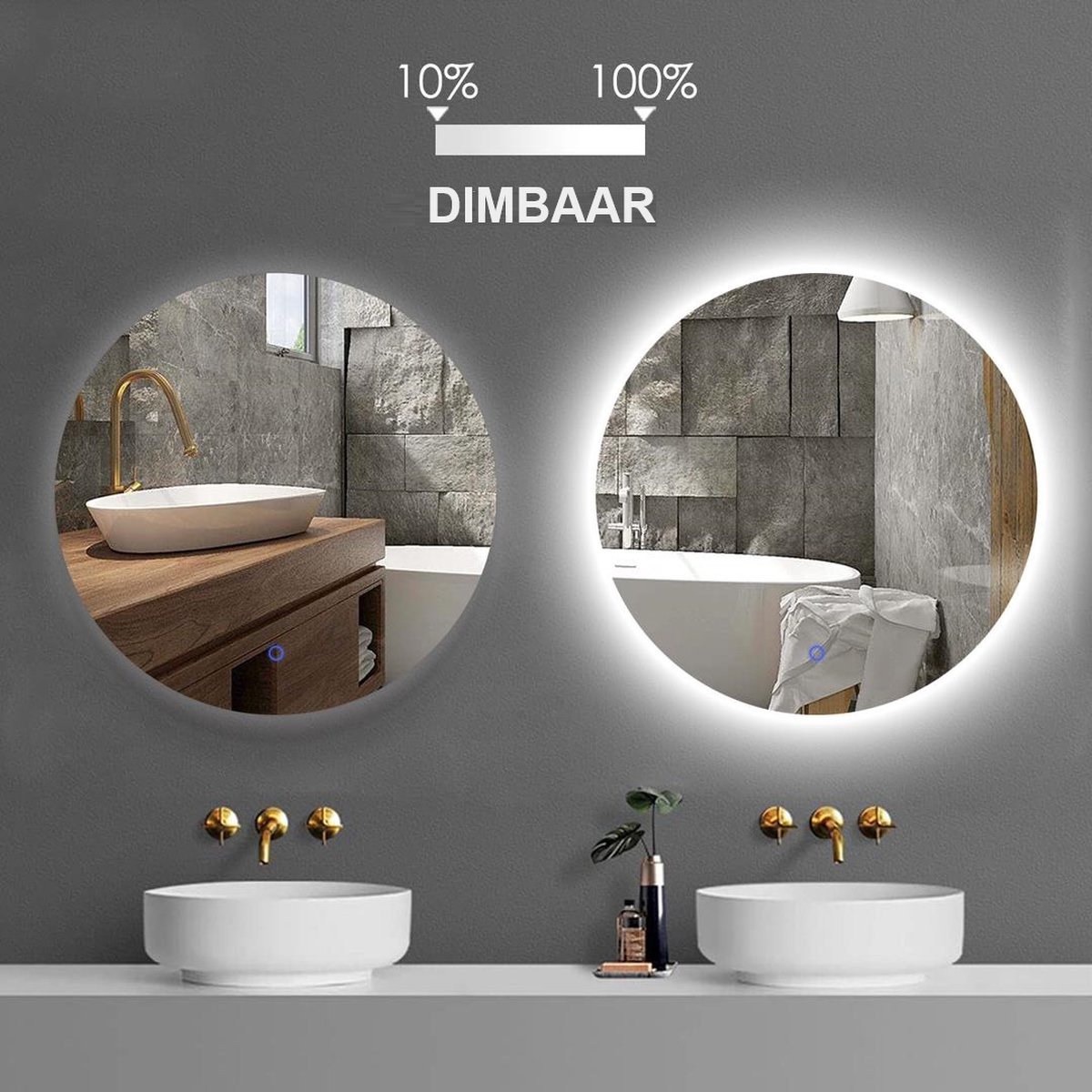Ronde badkamerspiegel voor een zeer lage prijs. De badkamerspiegel Nella is een spiegel mét led verlichting. De spiegel is zéér eenvoudig aan te sluiten met de bijgeleverde stekker. Deze spiegel bedien je eenvoudig aan de voorzijde met een toucknop. Door deze aan te raken schakel je de badkamerspiegel aan of uit.