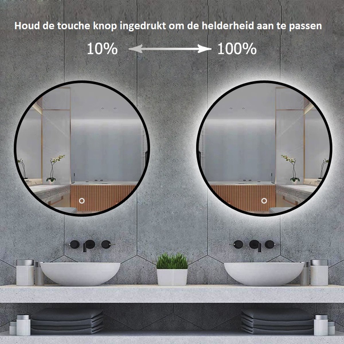 De LED-verlichting, slim geplaatst achter de spiegel, zorgt voor een prachtig lichteffect dat uw badkamer doet denken aan een vijfsterrenhotel. Met drie verschillende standen – 3000k(warm wit), 4000k(natuurlijk wit) en 6000K(koud wit) – kunt u kiezen voor sfeervolle, neutrale of functionele verlichting. Plus, de dimfunctie biedt nog meer aanpassingmogelijkheden.Zo kan je de verlichting dimmen of feller zetten.